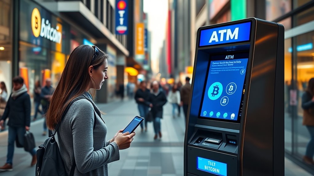 Bitcoin ATMs have become an easy way to buy and sell cryptocurrency without the need for a traditional exchange. When you approach one, you start by selecting whether you want to purchase or sell Bitcoin. The ATM then prompts you to scan a QR code from your digital wallet, which allows it to send or receive Bitcoin accurately. If you’re buying, you insert cash into the machine; if selling, you input the amount you want to sell. The ATM guides you step-by-step through the process on its screen, making the transaction straightforward. Once you complete the steps, you’ll receive a paper receipt or an email confirmation for your records, guaranteeing you have proof of the transaction.