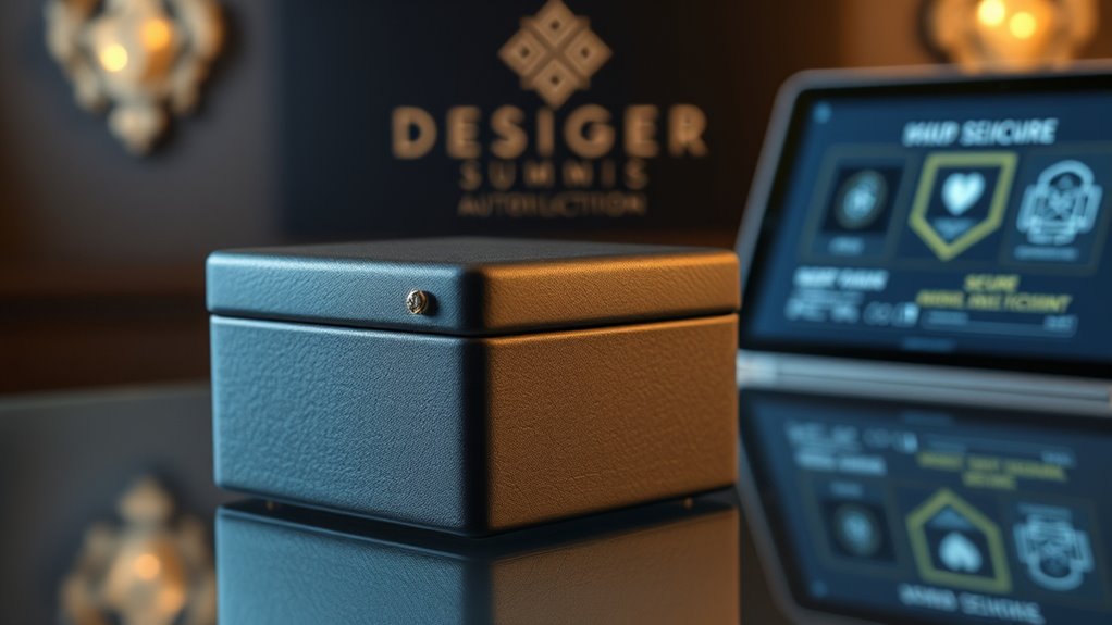 Harnessing emerging technologies alongside blockchain creates a powerful ecosystem for verifying luxury goods seamlessly. By integrating blockchain with AI, biometric tech, IoT sensors, and RFID tags, you enable real-time, automated digital authentication, reducing fraud risks. Special occasions like milestone celebrations can benefit from such secure verification methods, ensuring authenticity during memorable events. These tools support supply chain monitoring, ensuring product provenance from manufacturing to sale. 5G connectivity accelerates data transfer, allowing instant verification at any point. Augmented reality applications linked to blockchain data let you visually inspect authenticity details through smartphones or AR glasses, enhancing consumer trust. A hybrid verification system that combines wireless networks, AI, IoT, and blockchain forms a tamper-proof ecosystem, creating a seamless experience for verifying luxury items across multiple touchpoints. This integration streamlines authenticity checks and safeguards brand integrity more effectively than ever.