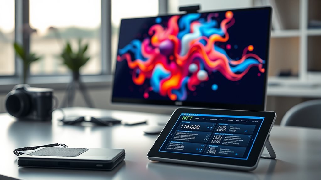 With the NFT market now valued at over $40 billion, protecting your digital art has never been more vital. NFT insurance provides peace of mind, shielding your valuable collections from risks like hacking and scams. As more investors insure their assets, confidence grows, fueling further expansion. Remember, safeguarding your digital masterpieces isn’t just smart—it’s essential in this fast-paced, evolving landscape. Don’t leave your investments vulnerable—insure today and secure your place in the digital art revolution.