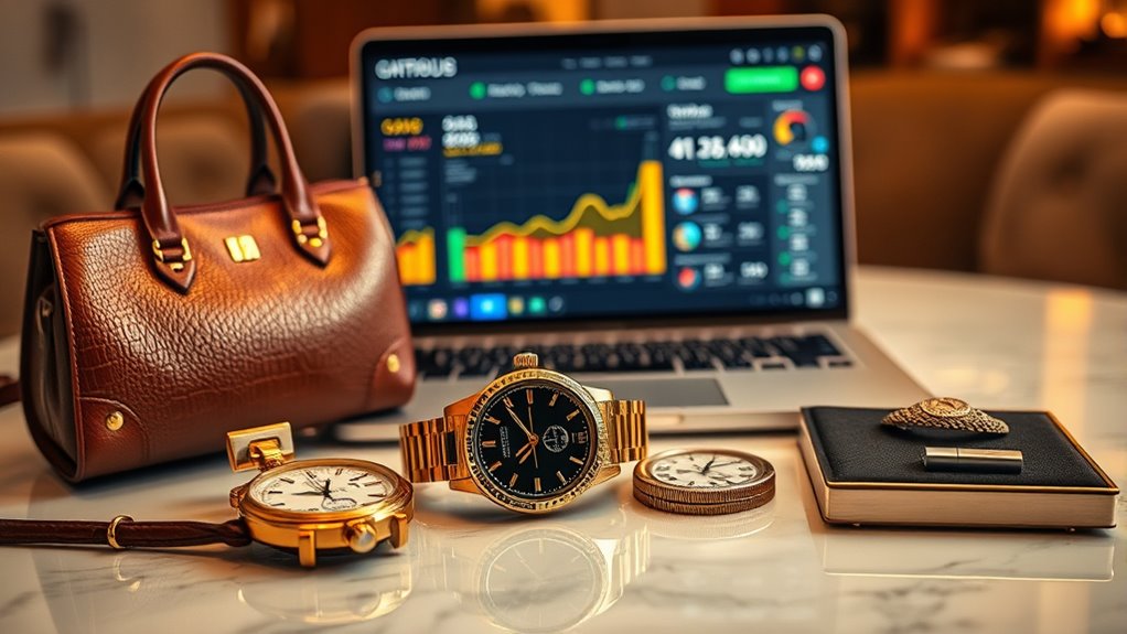 To evaluate the value of collectible luxury items, you should start by researching appraisal techniques, such as comparative analysis and expert appraisals. Keep an eye on market trends, as they can markedly impact an item’s worth. Look at recent sales of similar items and consider factors like condition, rarity, and provenance. Engaging with collectors and attending auctions can also give you valuable insights into current market values.