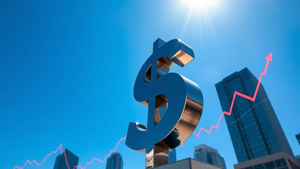 A sharp rise in producer prices in July signals growing inflation pressures, which can boost the dollar’s value as investors anticipate tighter monetary policies. Higher wholesale costs across sectors, especially in services and goods, often lead to increased consumer prices later. This surge indicates markets expect the Federal Reserve to contemplate interest rate hikes to combat inflation. To better understand how this impacts currency movement and markets, exploring further details can shed more light on these trends.
