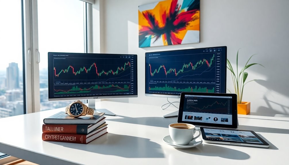 To live like a crypto millionaire, you start your day with a protein-rich breakfast of wagyu steak and eggs, fueling your energy for challenges ahead. You aim for 10,000 steps, balancing hiking with weightlifting to keep fit year-round. In trading, you master strategic techniques, staying adaptable and connected through networking events to boost your financial savvy. Luxury items? You buy and sell them intelligently, knowing they can appreciate in value. With a strong network, you cultivate relationships that can enhance your business growth. Keep going to discover more about shaping your ultimate routine and mindset for success.