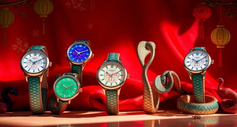 As you embrace the vibrant spirit of Lunar New Year 2025, imagine the elegance of a snake-inspired watch wrapping around your wrist, reflecting both wisdom and transformation. While the festivities burst with color and joy, your watch whispers a tale of ancient traditions and renewal. Just like a snake shedding its skin, you too can celebrate new beginnings, blending the old with the new. This year, let your timepiece be a symbol of both heritage and modern style.