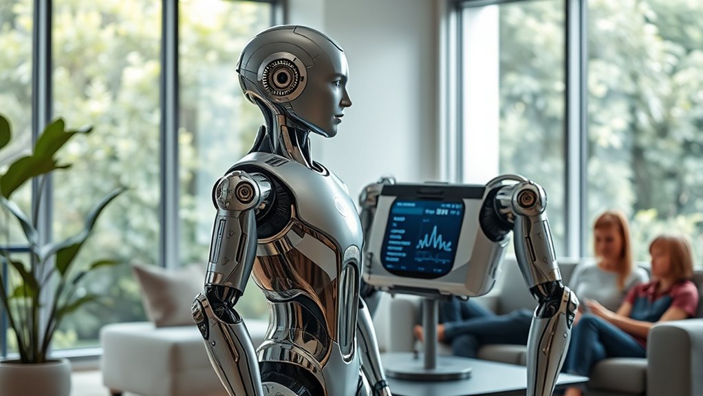 In the near future, you’ll be living alongside robots that use AI-driven health monitoring to enhance your well-being. These robots will track your essential signs, sleep patterns, and mood, providing real-time insights and support tailored to your needs. With continuous health data analysis, they’ll alert you or your healthcare provider about any irregularities, helping you make informed health decisions. Want to know how this technology will transform your daily life? There’s so much more to discover!