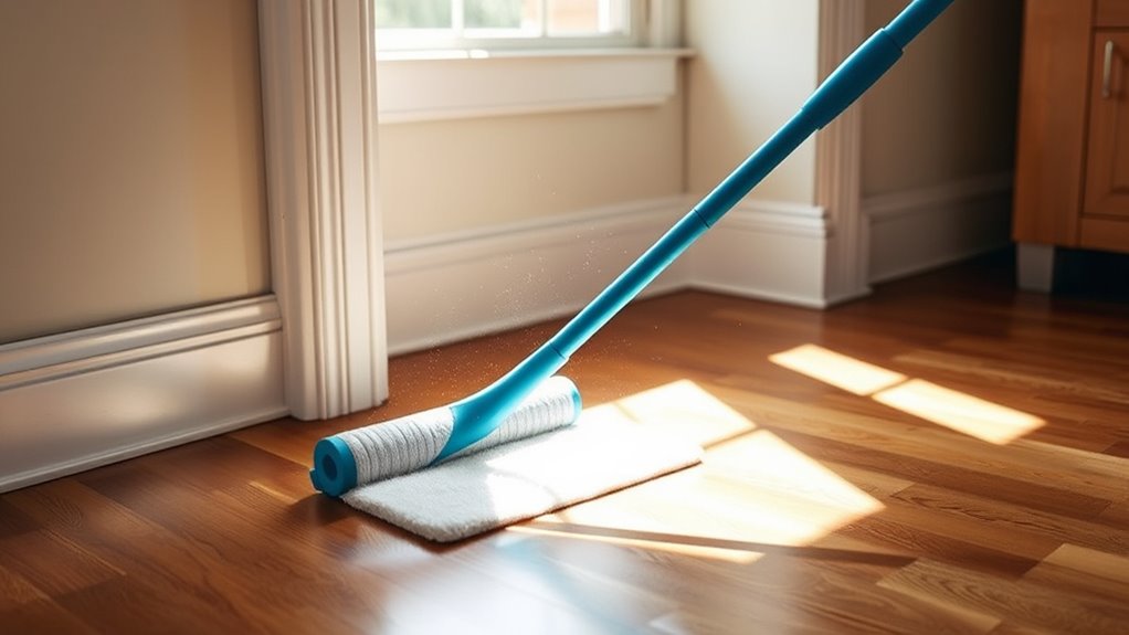 To keep your extendable roller mop in top shape, think of it as your trusty cleaning companion. After each use, rinse the roller under warm water, removing dirt and debris. For deeper cleaning, soak it in a mix of warm water and mild detergent. Establish a maintenance routine by checking the handle for looseness, ensuring it extends smoothly. Regular care not only prolongs its life but keeps your floors sparkling clean.
