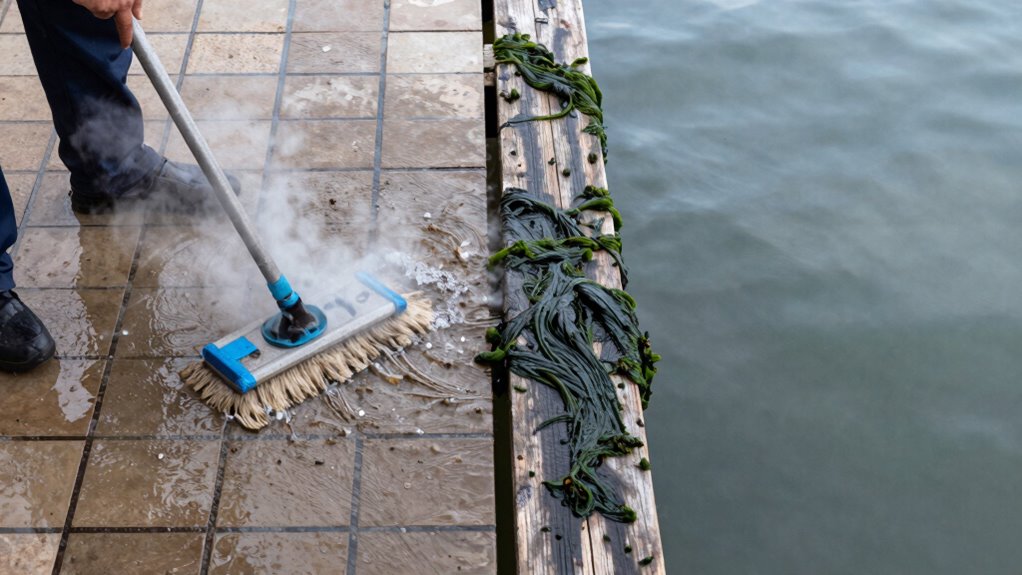 You should use hot water mop washing weekly for regular cleaning, especially on high-traffic floors, to effectively remove grime. Cold water docks can be incorporated into your dock cleaning schedule monthly or as needed, depending on dirt buildup. Adjust mop frequency based on your environment’s dirt levels and foot traffic. Regularly switching between hot and cold water methods guarantees your floors stay cleaner longer without damage.