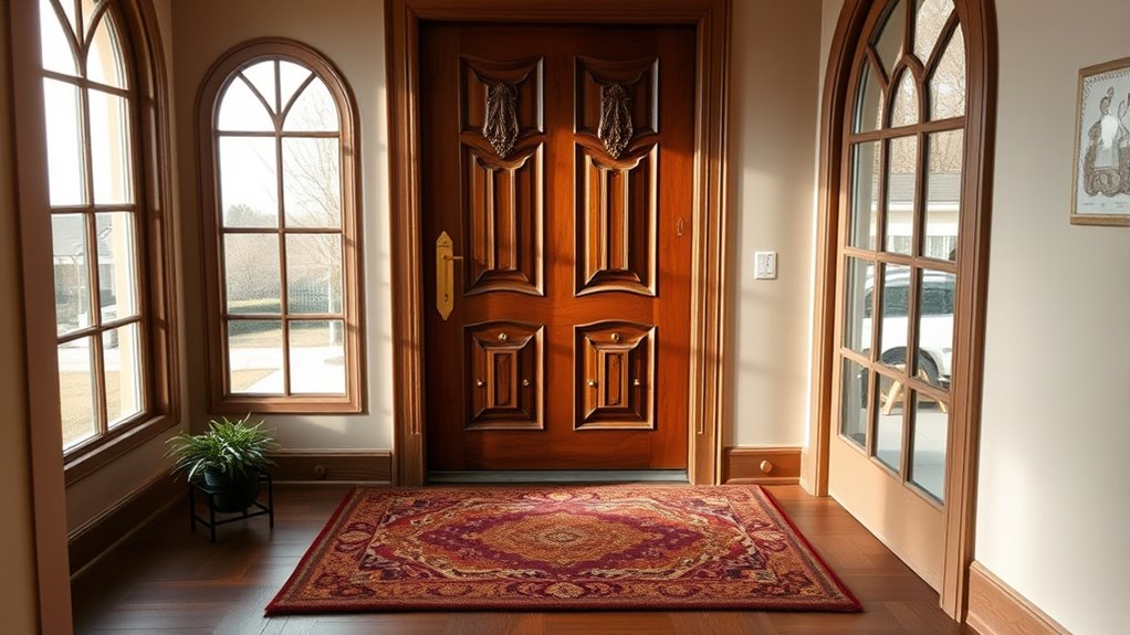 Think of thresholds as the gatekeepers of your home’s flow. For two-story homes, wood like oak, maple, or cherry adds warmth and resilience, especially where aesthetics matter. Aluminum offers a weatherproof shield, perfect for exterior entrances. Stone like granite or marble brings durability and elegance, ideal for high-traffic or moisture-prone areas. Combining these materials guarantees your thresholds stand strong, blending beauty with practicality to support your home’s daily rhythm.