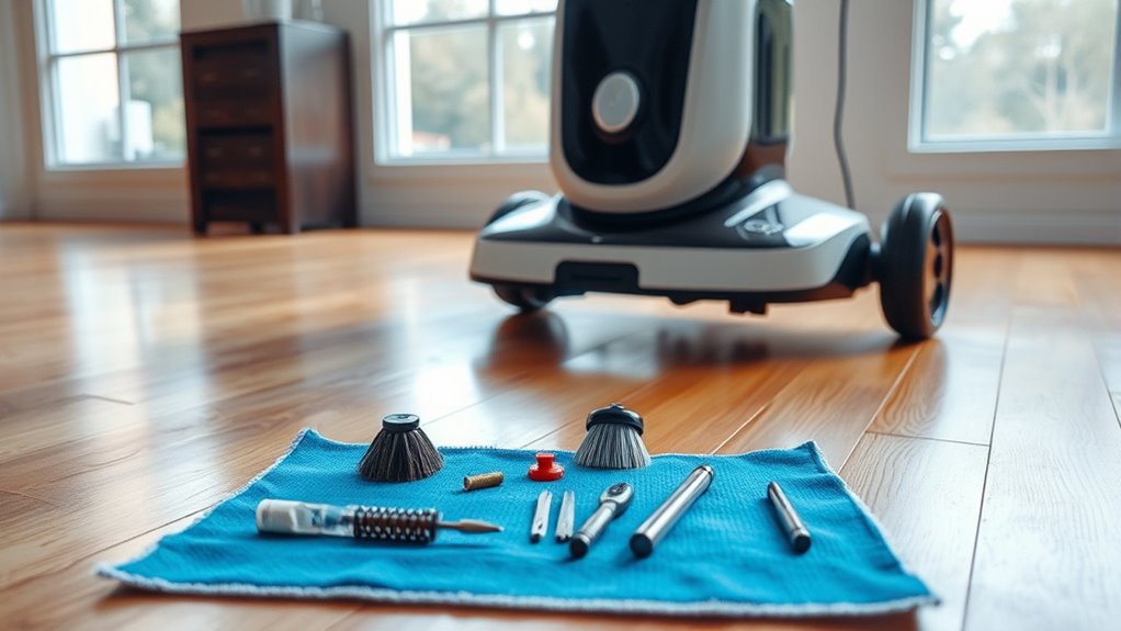 To keep your robot cleaner running smoothly and efficiently, regularly check the battery status and replace it when needed. Clean the brushes of hair and debris, and wipe the sensors to maintain accurate navigation. Empty the dustbin after each use to avoid performance issues, and keep the software updated for peak functionality. Following these simple maintenance tips can help prolong your device’s lifespan and improve its performance. There’s even more you’ll discover about maintaining your cleaner effectively.