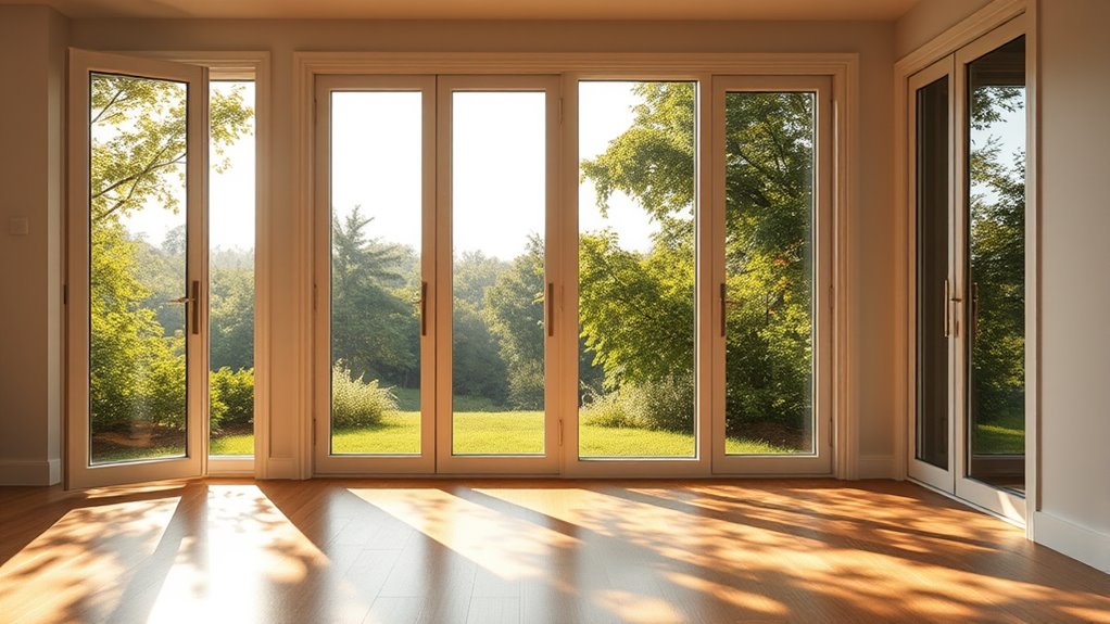 To choose the right size for casement windows, measure the rough opening where you’ll install them. Make sure to account for window insulation and any safety features you want, like tempered glass or secure locking mechanisms. It’s vital to verify the window fits snugly to maintain energy efficiency and prevent drafts. If you’re unsure, consult a professional to help you find the perfect size that meets your home’s requirements and enhances your space.