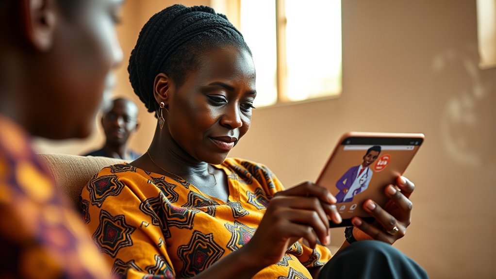 Digital doctors use AI-powered messages and mobile platforms to build vaccine trust among African mothers by providing personalized, credible information about vaccine safety and benefits. These tools can dispel myths, answer questions instantly, and enhance confidence in vaccinations. By leveraging telehealth and community engagement, digital doctors create a reliable support system that encourages vaccine uptake. If you want to explore how these innovative approaches are changing healthcare, there’s more to discover ahead.