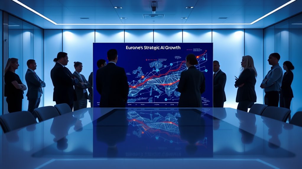 Just like a captain steering through unpredictable waters, the EU is charting a bold course toward AI self-reliance. Imagine building a ship strong enough to brave any storm—this is what the EU aims for with its AI strategies. With investments rising and regulations shaping a trusted landscape, you’re part of a journey toward a future where Europe’s innovation sails confidently on its own. Together, you’re shaping a resilient, competitive AI frontier.