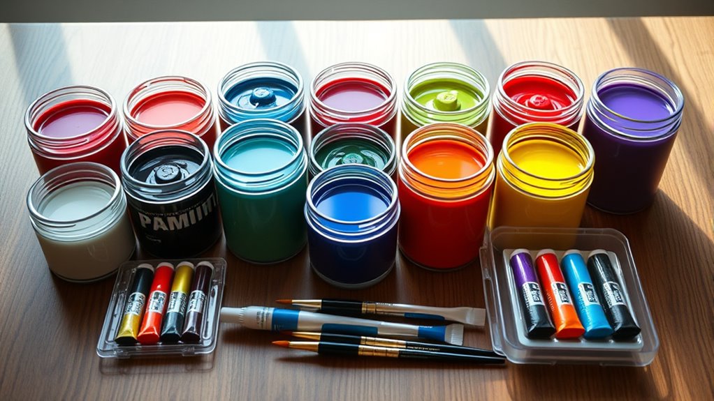- Choose acrylic paints compatible with various surfaces like canvas, wood, and ceramic, ensuring durability indoors and outdoors.