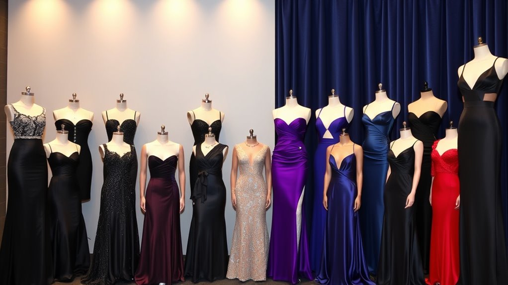 Choosing the right cocktail dress depends heavily on the quality of its fabric, since it directly impacts comfort, appearance, and durability. High-quality materials like satin, silk, or premium polyester blends feel soft and luxurious, giving your dress a polished look. They also tend to be resistant to wrinkling, keeping you looking sharp all night. Thicker, lined, or double-layered fabrics provide better coverage and less transparency, which is ideal for formal events. The weight and texture of the fabric influence how the dress drapes and maintains its shape, affecting the overall fit and style. Proper care, like gentle washing and avoiding static or snags, guarantees your dress stays in top condition longer. Investing in quality fabric means enjoying a dress that looks stunning and lasts through many nights out.