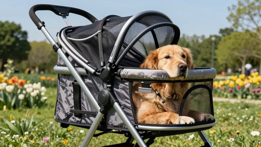 Choosing the right stroller isn’t just about size—it’s about understanding your dog’s needs and your lifestyle. Think of it as finding the perfect fit, like Cinderella’s slipper. With options like foldable designs, weather covers, and extra storage, you’re sure to find a match. So, don’t just walk—stride confidently knowing your big dog is comfy and safe. After all, your pet deserves a ride as grand as their personality!