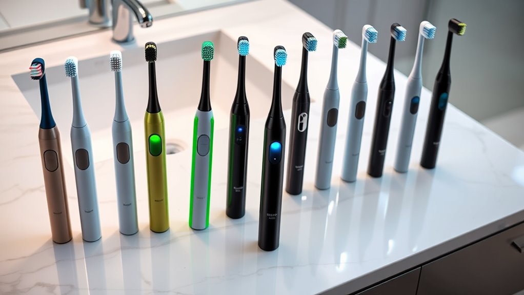 Choosing the right electric toothbrush can truly elevate your oral care routine, much like discovering a secret passage in a manor. Whether you prefer the advanced tech of the Oral-B iO or the simplicity of a Sonicare, there’s a perfect fit for everyone in 2025. Don’t forget, a good toothbrush is an investment in your health—so take your time and pick wisely. After all, your smile deserves nothing less than the best.