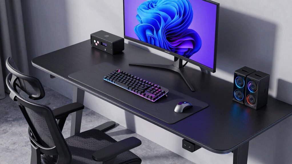 Ergonomic desks improve my gaming performance by providing better comfort and support, which helps me focus longer without fatigue. They reduce strain on my neck, back, and wrists, so I stay more alert and responsive. With adjustable height and spacious surfaces, I can customize my setup for ideal positioning. This boosts my precision and reaction time, making gaming more enjoyable and competitive.