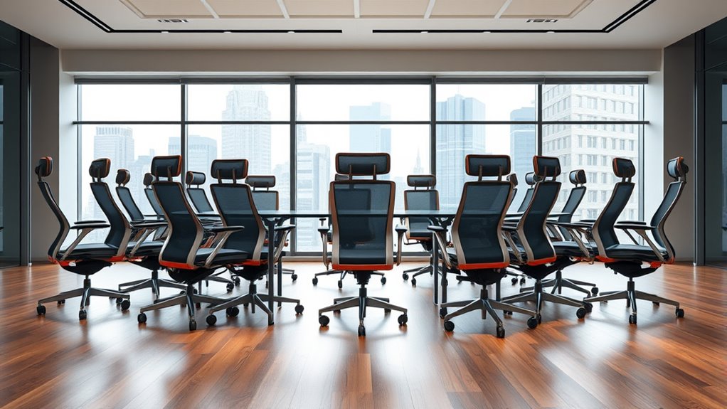 If you’re looking to upgrade your workspace in 2025, I recommend checking out the 15 best ergonomic office chairs that combine adjustability, support, and durability. These chairs feature customizable headrests, lumbar support, armrests, and recline options, ensuring comfort for long hours. Many come with breathable mesh and sturdy frames, supporting various body types and weights. Stay tuned, because I’ll share all the details so you can choose the perfect chair for your needs.