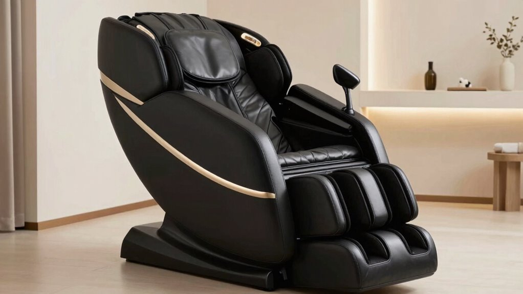 Think of foot rollers as your personal acupuncturist, targeting specific pressure points for relief. Yes, many massage chairs are designed with adjustable foot rollers that focus on areas like your arches or heels, helping to ease tension and improve circulation. I find this feature particularly effective because it mimics traditional reflexology techniques, making your massage more personalized and deeply relaxing.