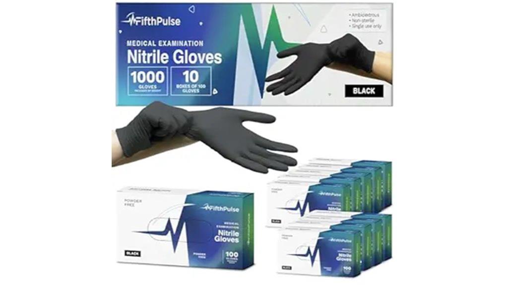 Black Nitrile Gloves in a case of 1000 are an excellent choice for professionals who need reliable, medical-grade protection without latex or powder. These gloves are durable, 3 mil thick, and resistant to tearing, making them ideal for medical, lab, or industrial use. They fit comfortably, feel like a second skin, and feature textured tips that work with tablets and touchscreens. While some users report inconsistent sizing or occasional tearing, overall, they offer good grip, durability, and value for bulk purchases. I recommend inspecting each glove before use to guarantee quality, but they remain a solid, versatile option for many demanding environments.