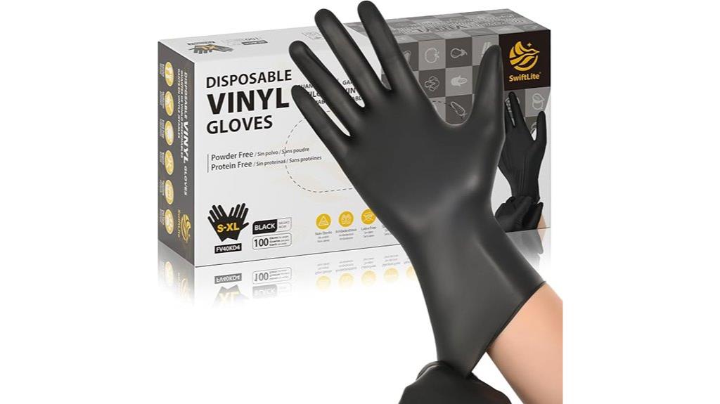Black vinyl gloves stand out as an excellent choice for anyone seeking food-grade, latex-free, and powder-free disposable gloves that prioritize safety and convenience. Made from lightweight, durable vinyl, they glide on smoothly and fit snugly, though sizing can vary. Many users appreciate their strength—they resist tearing and ripping, even at the wrist during donning. These gloves are versatile, ideal for food prep, cleaning, vehicle detailing, and pet care. While some find them slightly thin or experience sizing issues initially, overall, they offer reliable protection, ease of use, and good value, making them a popular choice for many tasks.
