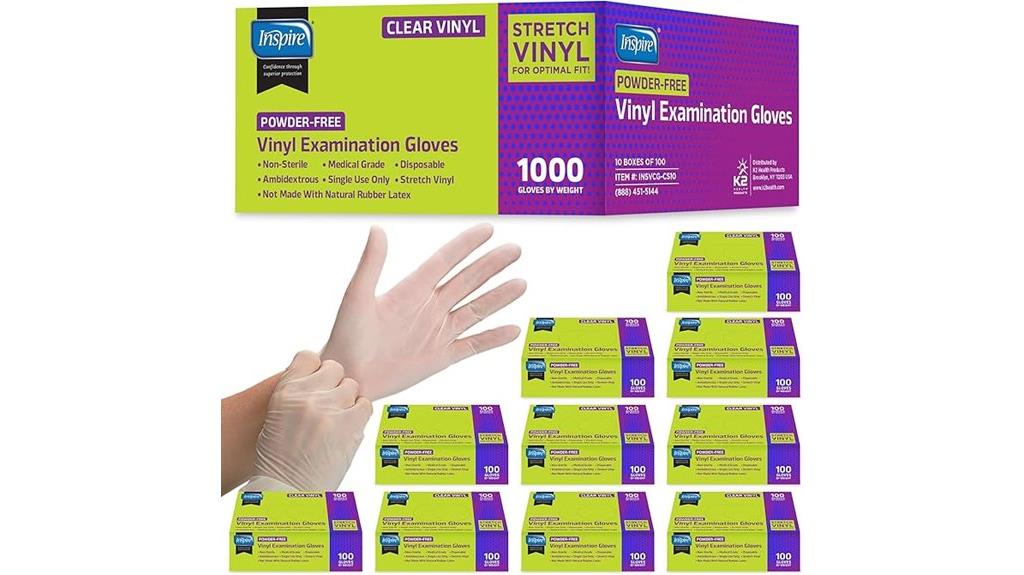 Inspire Stretch Vinyl Exam Gloves, 1000 Count