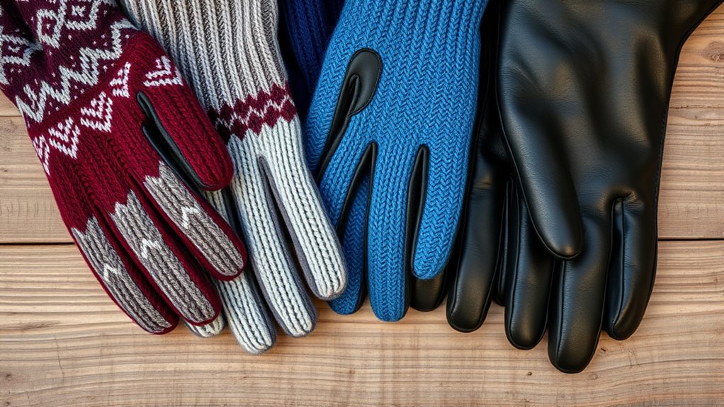 Imagine a wardrobe where gloves are like chameleons changing colors to match your style. I find that winter gloves today are just as much about fashion as function—sleek leather, vibrant knits, and modern designs blend warmth with trendiness. You don’t have to sacrifice style for comfort; many brands now craft gloves that are both chic and cozy, helping you stand out even in the coldest weather.