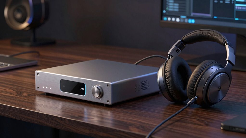 Choosing the right headphone DAC amp combo really enhances your listening experience, whether you’re gaming, working, or relaxing. Did you know that high-quality DACs can improve sound clarity by up to 50%? Investing in a solid combo guarantees you get immersive, crisp audio every time. With options spanning from portable to desktop, there’s something for everyone. Explore these top picks and elevate your audio game—your ears will thank you!
