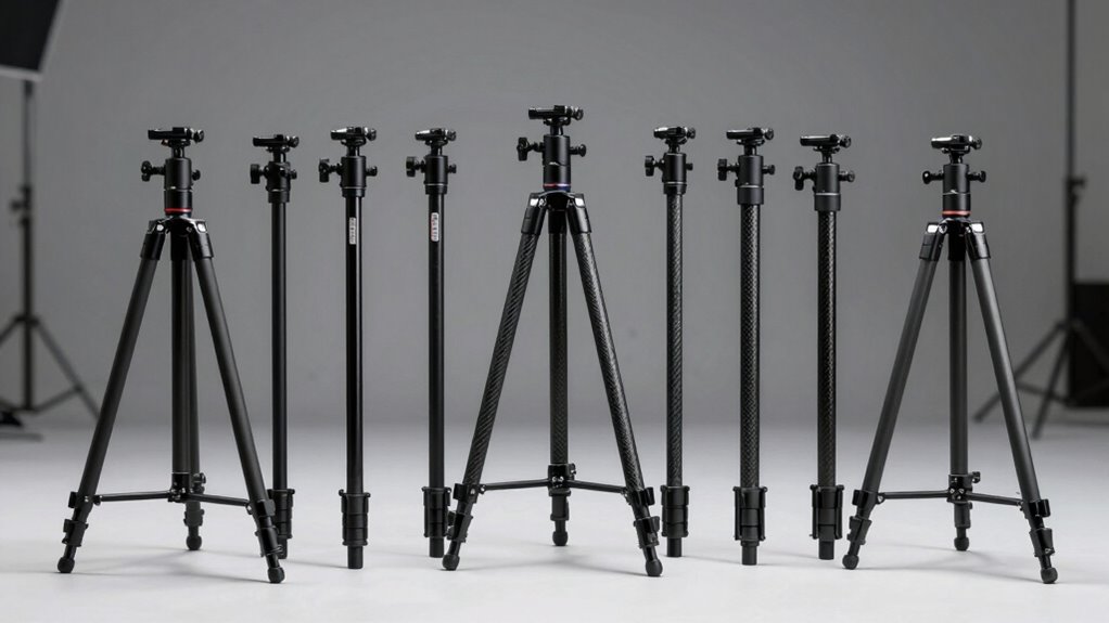 The height adjustability range of a heavy-duty carbon fiber tripod considerably influences its versatility across different shooting scenarios. It determines how high or low the tripod can extend, impacting your ability to capture varied angles. For landscape shots, you’ll want a tripod that can reach higher elevations, while macro photography often requires ground-level positioning. Look for models with adjustable height ranges that cover both ends of the spectrum. Tripods with telescopic or multi-section legs usually offer more extensive height options compared to fixed-length models. Be sure to check the minimum and maximum height specifications to ensure the tripod suits your specific photography and videography needs. A wider height variation range provides greater flexibility, whether you’re shooting outdoors or indoors, at eye level or ground level.