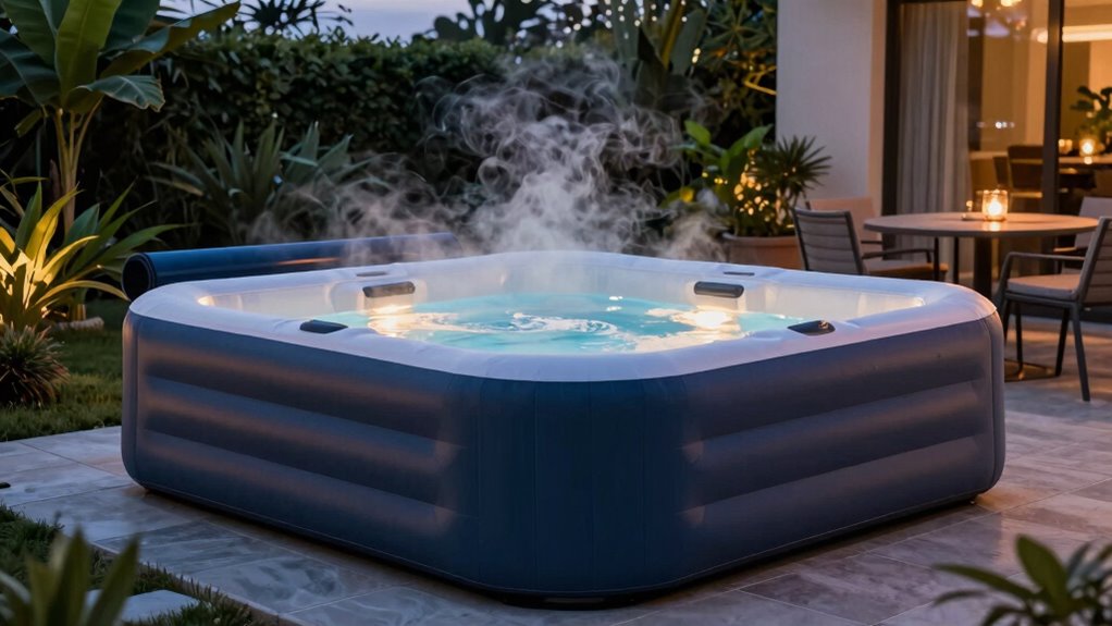 Maintaining your inflatable hot tub is simpler than you might think, yet essential for top performance. I regularly check the water chemistry, clean filters weekly, and make certain the cover stays in good shape to keep debris out. While it’s easy to overlook, consistent maintenance prevents issues like algae growth or pump failure. By dedicating a little time each week, I keep my spa running smoothly, guaranteeing relaxing, trouble-free dips every time.