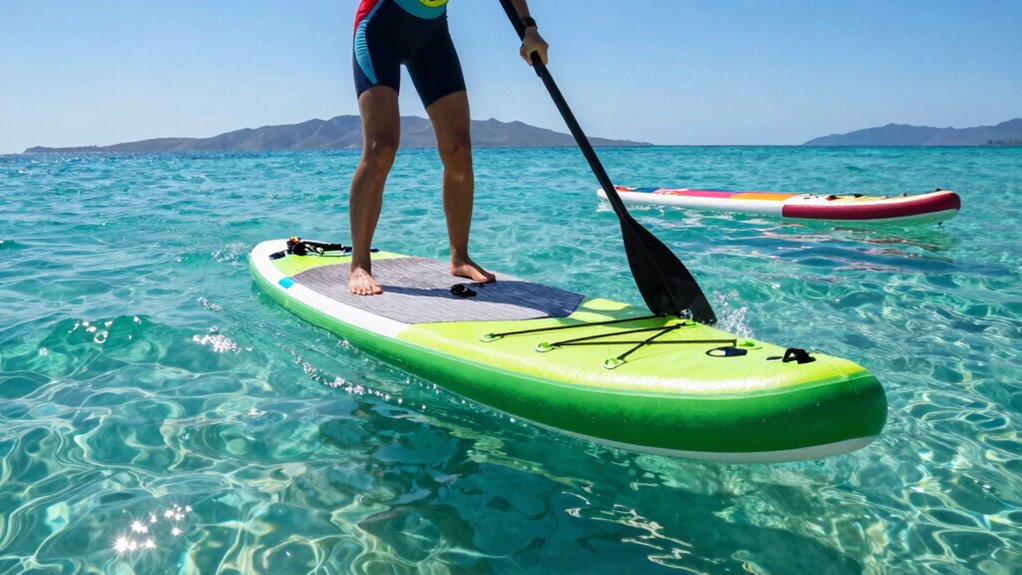 Choosing the right inflatable paddle board length is essential for a successful touring experience. Longer boards, around 11 to 12 feet, offer better stability and glide, making long-distance paddling smoother. An ideal length balances speed and maneuverability, with 11’6″ to 12’6″ being perfect for most paddlers. Wider boards, about 32 to 34 inches, provide extra stability, especially when carrying gear or on extended trips. Longer boards track straighter, reducing the effort needed to stay on course over long distances. However, the best length for you depends on your skill level, water conditions, and the type of touring you plan to do. Selecting a board with the right length guarantees comfort, efficiency, and confidence on the water.