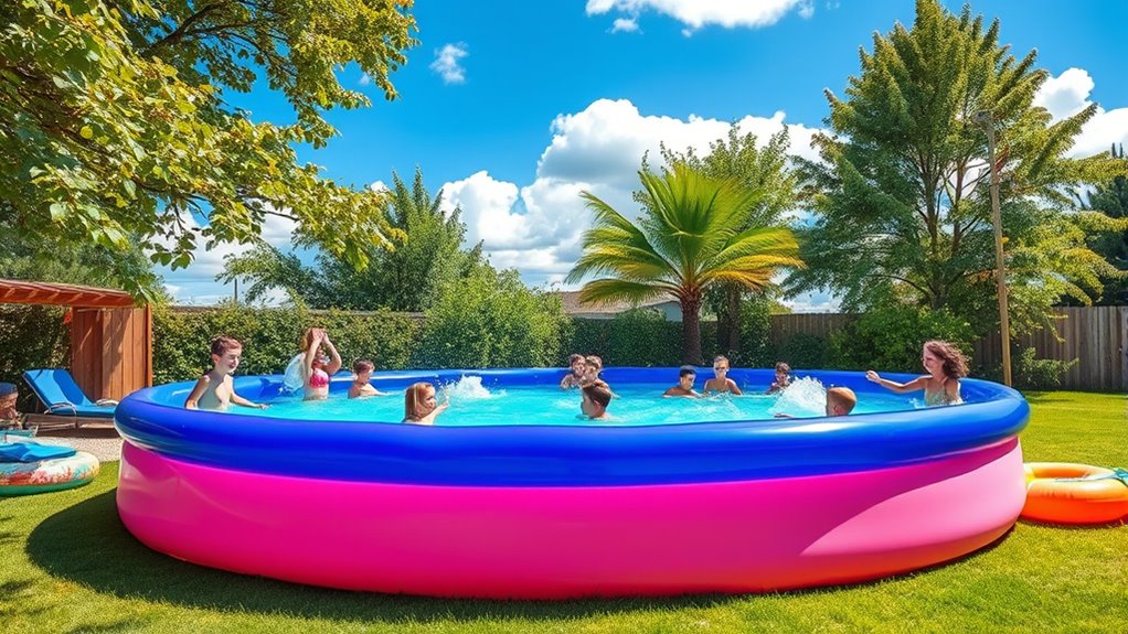 Inflatable pools are generally suitable for all ages and swimming skill levels, but I recommend choosing one with appropriate depth and safety features for kids or beginners. I always supervise children closely and make certain the pool size matches their comfort level. While adults can enjoy them too, it’s essential to follow safety guidelines, especially if swimming skills vary. Proper supervision makes inflatable pools a fun and safe summer option for everyone.