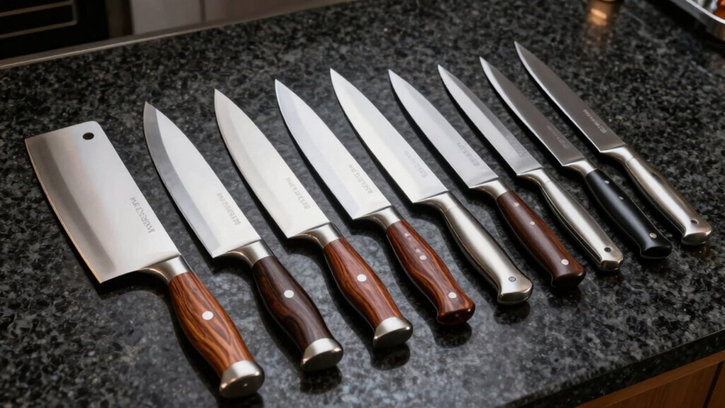 Choosing the right knife can transform your cooking game from good to legendary—it’s like wielding a sword in a culinary battlefield. Whether you prefer a precision Japanese blade or a versatile chef’s knife, investing in quality guarantees every cut is effortless and sharp as a razor. Remember, a great knife isn’t just a tool; it’s your secret weapon that elevates your skills to epic proportions. So, pick wisely and cook like a true professional!
