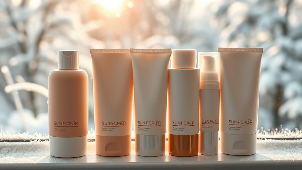 Choosing the right SPF level for winter sunscreens depends on several factors, including your skin type, how long you’ll be outdoors, and the intensity of UV exposure in your area. During winter, an SPF of 30 usually provides enough protection for daily activities, but if you’re spending extended time outside or engaged in outdoor sports, a higher SPF like 50+ is advisable. Look for broad-spectrum protection, such as SPF 50+ PA++++, to shield against both UVA and UVB rays, which can penetrate clouds and snow. Even in winter, UV rays can cause skin damage, so choosing a sunscreen with at least SPF 30 is wise. Remember, reapplying every two hours helps maintain protection, especially in reflective environments like snow.
