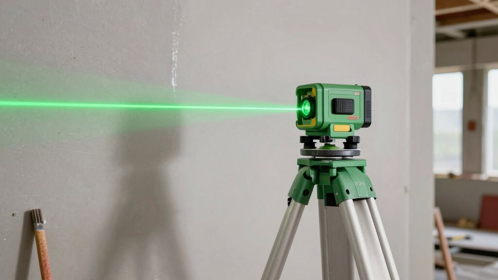 Self-leveling technology improves accuracy by automatically adjusting the laser to guarantee it’s perfectly horizontal or vertical, even on uneven surfaces. I find it really helpful because I don’t have to manually level the device, which saves me time and reduces errors. This technology constantly monitors and corrects the laser’s position, resulting in precise lines that make my projects smoother and more professional-looking.
