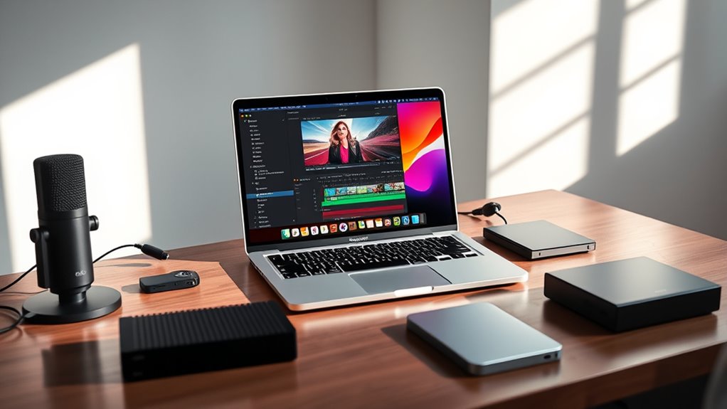 If you’re serious about video editing in 2025, investing in a powerful MacBook Pro can make all the difference. Imagine a filmmaker like Sarah, editing 8K footage smoothly on the M4 Max model—saving time and reducing frustration. Whether you’re a professional or an enthusiast, choosing the right specs guarantees your creative flow stays uninterrupted. Don’t settle for less; your best editing experience starts with the right MacBook Pro.
