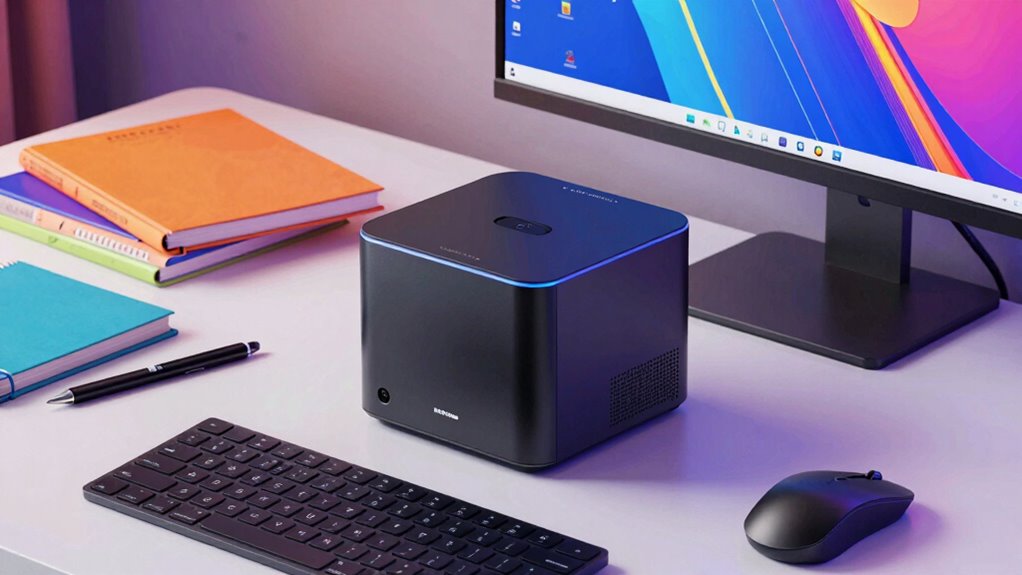 Mini PCs handle high-end creative software pretty well, especially if they have powerful processors, ample RAM, and dedicated graphics. I’ve found that the latest models with advanced chips and fast SSDs can run demanding programs like Adobe Creative Suite or 3D rendering tools smoothly. While they might not match full-sized desktops, they’re surprisingly capable, making them a solid choice for creators who need portability without sacrificing too much performance.