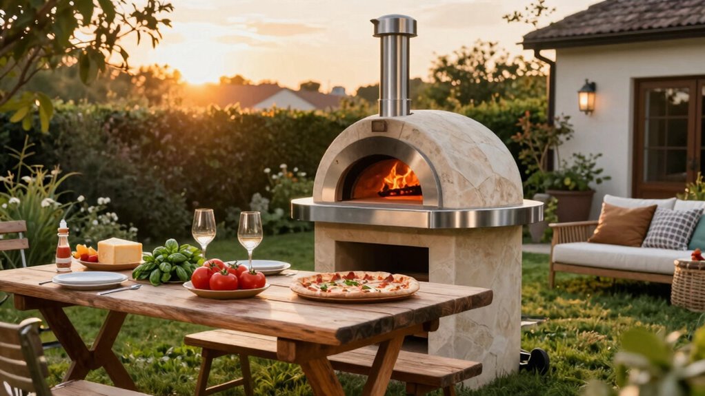 If you’re looking for the 15 best outdoor pizza ovens for your backyard in 2026, I’ve found some great options that suit various needs. From compact, portable models with rotatable stones to multi-fuel ovens supporting wood, gas, or pellets, these choices offer excellent temperature control, quick preheat times, and durable designs. Each one can help you create authentic, delicious pizzas and more. Keep going; you’ll find detailed info on these top picks and what makes them stand out.