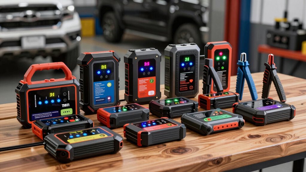 If you’re looking for the 15 best portable jump starters for trucks in 2026, I’ve got you covered. I focus on models with high peak currents like AUXITO’s 6000A and WOLFBOX’s 4000A, which handle heavy-duty engines. Safety features, durability, and added functions like air compressors and power banks matter too. Stay with me, and I’ll walk you through what to evaluate so you choose the best one for your truck.