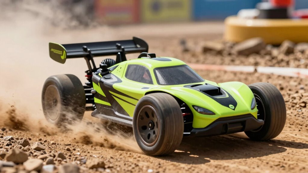 The control range and precision of a high-speed brushless RC car considerably influence how effectively you can operate it, especially at top speeds. A longer control range, typically between 100 and over 300 meters, allows for more freedom and safety, particularly in open areas. Precision depends largely on the quality of the 2.4GHz radio system, which ensures a stable connection and reduces signal interference during high-speed maneuvers. Adjustable sensitivity settings on the remote transmitter can further improve control accuracy, letting you fine-tune throttle and steering responses. Higher-end models often feature customizable control parameters, giving you the flexibility to adapt responsiveness to different racing or stunt scenarios. Ultimately, better control range and precision mean more confident driving and a more enjoyable experience.