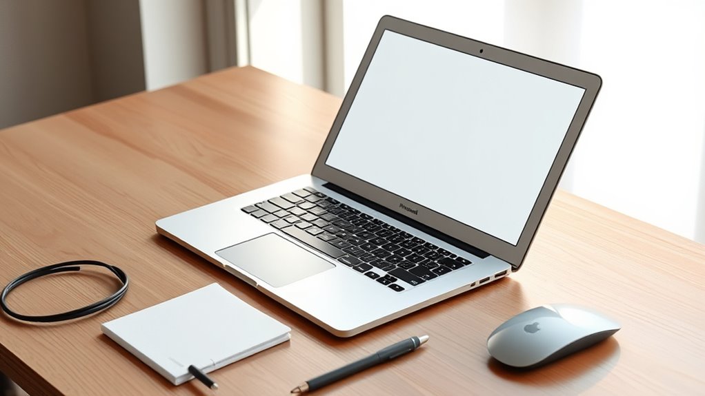 When selecting a renewed MacBook Air, I focus on key factors like hardware specs, battery life, and display quality to guarantee it meets my needs. Port options and software compatibility also play a big role in my decision-making process. Considering these points helps me find a reliable laptop that balances performance and value.