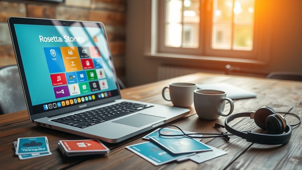 Considering the language options available in a Rosetta Stone lifetime subscription is essential to guarantee it aligns with my learning goals. I need to check if the subscription offers access to multiple languages or if it’s limited to just one. Knowing the range of languages—like Spanish, French, Mandarin, or less common ones—is important for my interests. I also look for dialect variations or regional accents, which can enhance my understanding and pronunciation. It’s helpful to see if I can add new languages later or if I’m restricted to a fixed set from the start. Additionally, I want to know if the platform updates or expands its language options over time, ensuring ongoing learning opportunities and value.