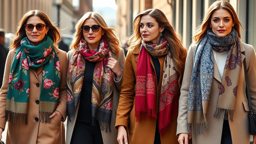 If you want to elevate your style this season, I recommend exploring versatile scarves like the FURTALK Pashmina with a cashmere feel, RIIQIICHY’s lightweight wrap, and the elegant Womens Silk Feeling Scarf. Options like the Veronz cashmere-style winter scarf and colorful AIVIAI scarves add flair to any outfit. Whether you prefer bold patterns, luxe fabrics, or easy-care designs, there’s something here to suit your look. Keep going to discover more ways to upgrade your wardrobe effortlessly.