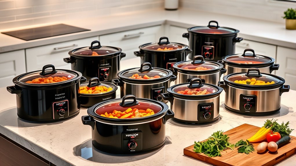 If you’re looking for the 14 best slow cookers of 2025, I’ve got you covered. From large-capacity models like the Crock-Pot 8-Quart to versatile multi-functions like the Ninja Foodi PossibleCooker PRO, there’s something for every need. I focus on ease of use, durability, and features that deliver perfect results with minimal effort. Keep going to discover which slow cooker suits your lifestyle and kitchen best.