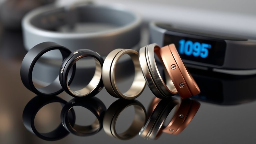 Think of smart rings as sleek, discreet spies that blend into your daily life, unlike bulky traditional fitness trackers. I found that rings often feel more comfortable and less intrusive, encouraging consistent wear. While trackers on wrists offer more visual data, rings focus on essential metrics like sleep and heart rate quietly. Overall, smart rings are a subtle, stylish upgrade that seamlessly integrate into your routine.