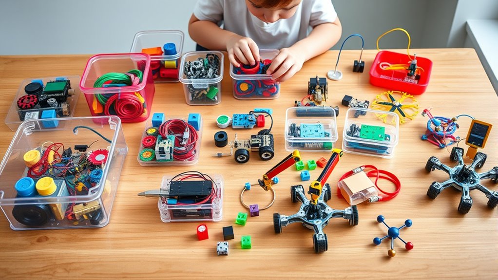 If you’re looking for the 15 best STEM toy kits that turn learning into a fun, hands-on adventure, I’ve got you covered. These kits range from electronics and robotics to mechanical projects, suitable for children of various ages and skill levels. They promote creativity, critical thinking, and problem-solving while ensuring safety and durability. Keep exploring, and I’ll share detailed insights to help you choose the perfect kits that inspire curiosity and growth.