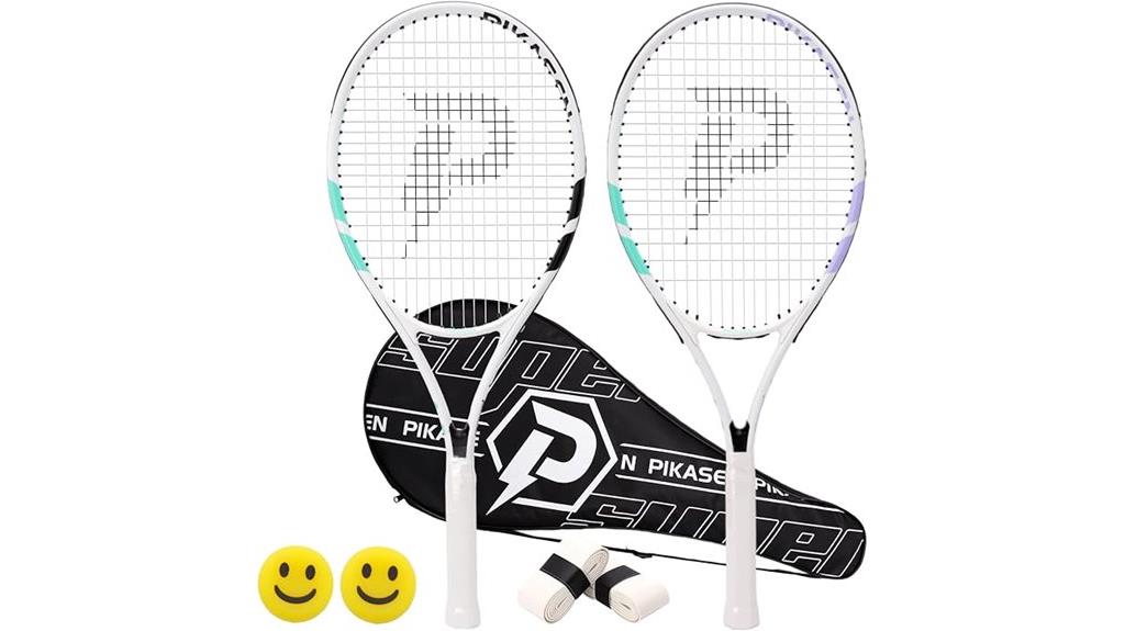 For adult players seeking an easy-to-handle and versatile set, the 27-inch Tennis Rackets of 2025 stand out as an excellent choice. This set includes two lightweight rackets weighing around 290 grams, making them perfect for beginners and recreational players. The package also features a premium carry case, two overgrips for better grip, and vibration dampers to enhance comfort. Designed for both men and women, these rackets offer improved control and handling. Plus, with a 1-year warranty and responsive customer service, you get peace of mind. Whether you’re teaching or playing casually, this set provides everything needed for a great game.