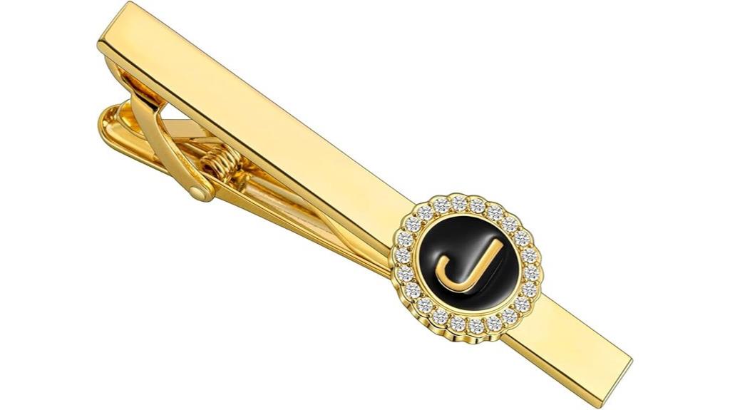For men who want a versatile and personalized accessory, the Tie Clips for Men, Black Gold Silver 2.1-inch Initial Alphabet Letter Tie Clip Bar Set is an excellent choice. These clips come in three elegant colors—gold, black, and silver—adding a unique letter element for customization. With a sturdy 2.1-inch design, they keep ties perfectly in place. Made from durable copper and electroplated steel, they resist corrosion and maintain a glossy finish. Their simple yet stylish look complements various outfits, making them suitable for everyday wear or special occasions. Plus, the personalized initials add a refined touch that boosts confidence and style.