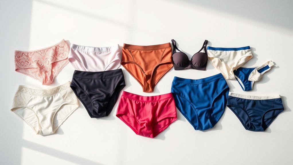 In 2025, I recommend trying a variety of underwear styles to boost comfort and confidence. Seamless bikinis, supportive boxer briefs, and breathable thongs are favorites for everyday wear, offering comfort without lines or chafing. High-waisted designs and full-coverage options provide tummy control and support. Fabrics like cotton, bamboo, and moisture-wicking materials keep you dry and comfortable all day. If you want to explore the top styles suited to your needs, keep going for the full breakdown.