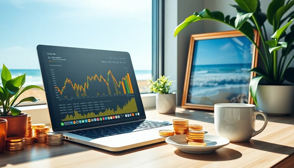 To retire early with crypto investments, start by allocating 5-10% of your retirement savings to cryptocurrencies like Bitcoin and Ethereum while diversifying with stablecoins. Consider using staking and DeFi projects for passive income, and regularly rebalance your portfolio to manage risks. Stay informed about market trends and choose projects with strong fundamentals. By strategically planning and adapting your approach, you can build a solid foundation for early retirement; more insights wait just ahead.